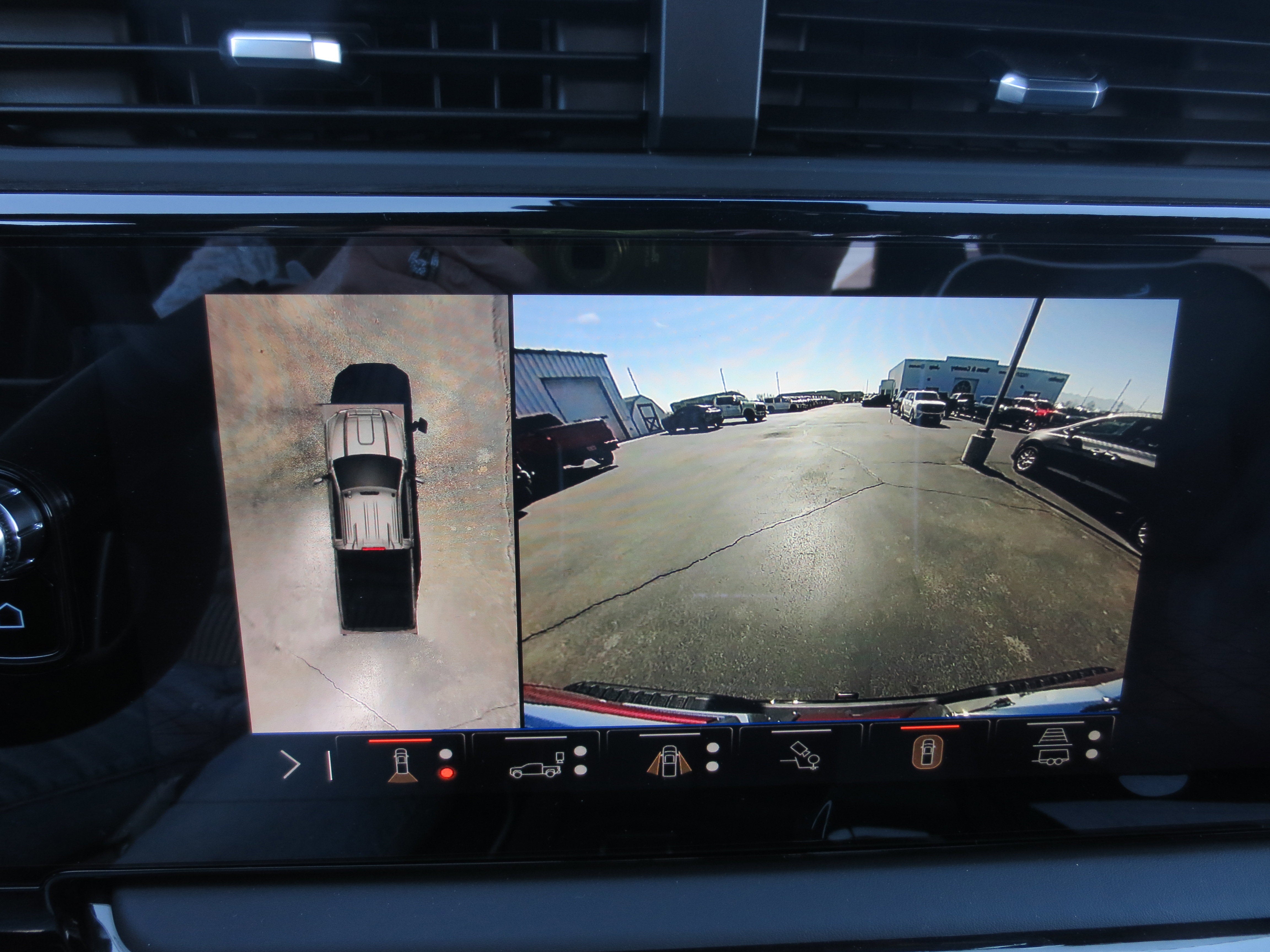 - Allows driver to see inside the cargo bed on the infotainment display to help with 5th wheel or gooseneck hitching and to check cargo